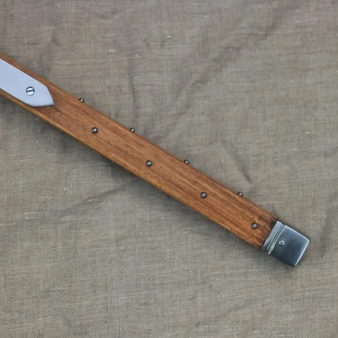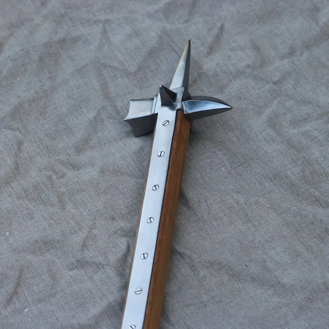 Materiale: 1065 hærdet kulstofstål, træ / Hårdhed: 48 – 52 HRC / Kant: semi-skarpe / Længde: 66,5 cm / del Længde stål: 42,5 cm / Længde længste spike: 9.2 cm / Længde hammer del: 2,4 cm / Vægt: 1210 g / Baseret på en historisk original