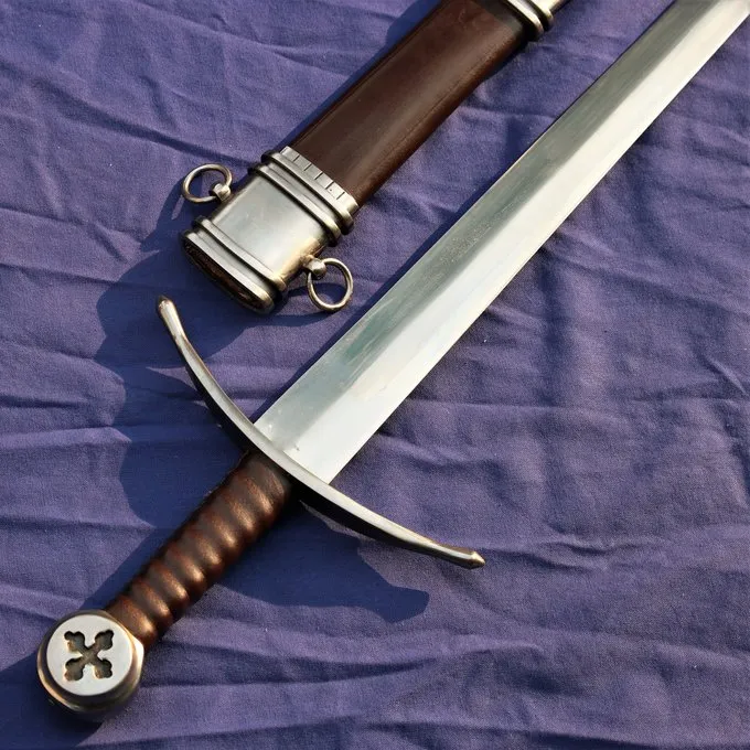 En smuk replika sværd, lavet efter historiske sværd fra det sekstende århundrede. Denne sene middelalder-renæssance sværd blev brugt af Knights of St John under belejringen Malta i 1565. The Knights of St John besejrede osmannerne. Denne ridder sværd er baseret på sværdene anvendes af Ridderskab of St John i denne periode. Et kryds kan ses på saddelknappen: symbolet på ridderskabet. Orden St John, også kendt som Knight Hospitallers, var blevet placeret i Malta siden 1530. Det er derfor, de er også kaldet maltesisk Order. Dette sværd er lavet af 1085 carbonstål med en hårdhed på 52 HRC. Kanten er semi-skarpe. Du kan bruge det som et dekorativt sværd med et kostume eller til dit sværd samling, men du kan også blunten bladet at bruge det til sværd træning og reenactment slag. Den leveres med et sværd skede med stål bæltestropper, så du kan bære den på bæltet